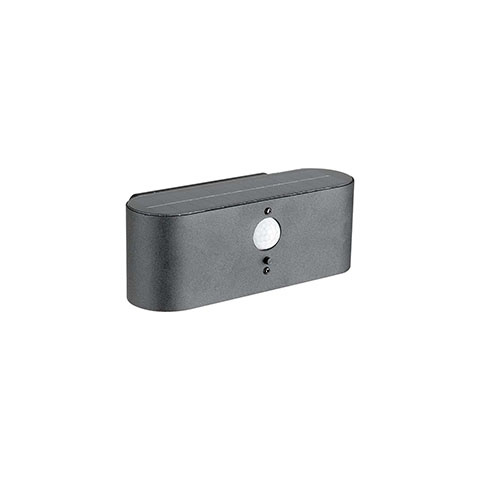1 kép Napelemes oldalfali lámpa, PIR mozgásérzékelős szenzorral (fekete) 0.8W, meleg fehér