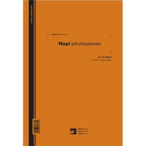 Napi pénztárjelentés 25x2+2 lapos tömb A/4 álló 25x2+2 lapos tömb A/4 álló