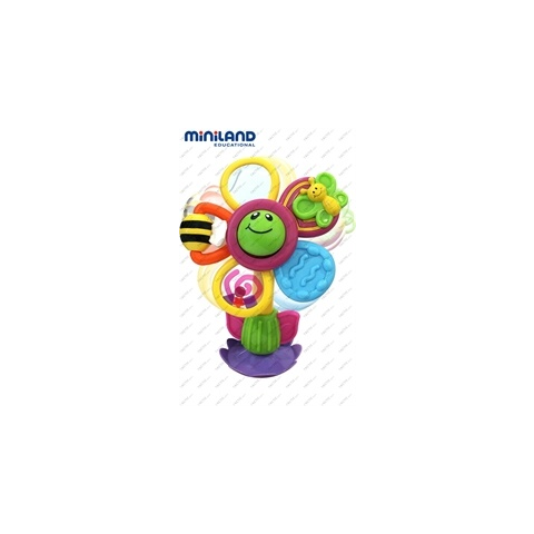 Csörgo hangot adó pörgetheto napraforgó játék, minden egyes szirom külön kinézetu, anyagú és színu. Középen kis labda található. A talprész tapadókoronggal rendelkezik a stabilabb állás érdekében miközben forgatja a baba a játékot. A játék speciálisan a vizuális érzékek fejlesztésére szolgál.