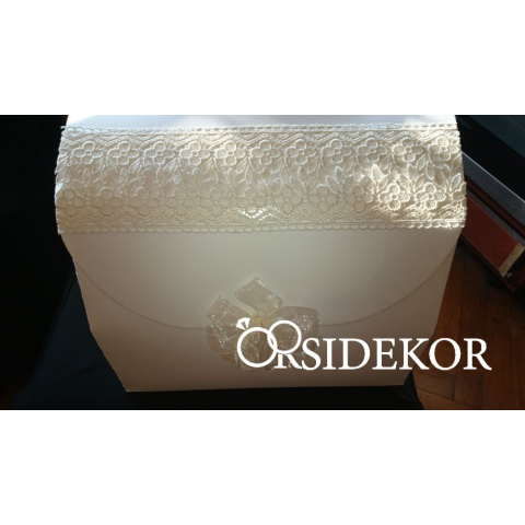 1 kép Nászajándékgyűjtő doboz/persely csipkével és szalaggal