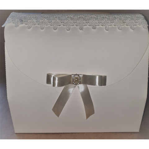1 kép Nászajándékgyűjtő doboz/persely csipkével, szalaggal és gyönggyel