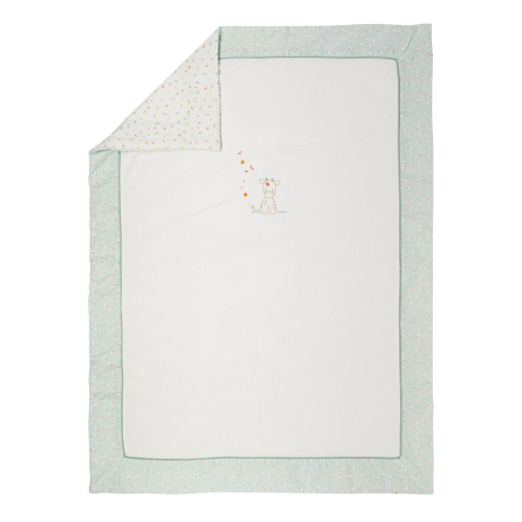 Nattou Mila, Zoe és Lana babatakaró: Puha kényelem a babádnak 🌸 Ez a 100x135 cm-es, kétoldalas babatakaró tökéletes választás a kicsik számára, legyen szó otthoni pihenésről vagy utazásról. A krémszínű, mentás virágos mintázatú takaró nem csak gyönyö...