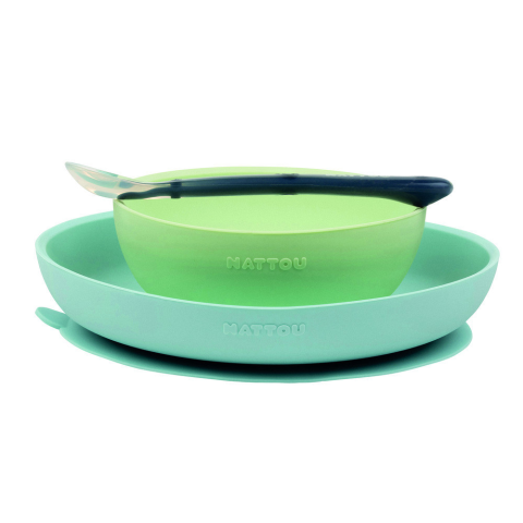 Nattou étkészlet szilikon 3 részes zöld-kék