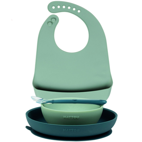 1 kép Nattou étkészlet szilikon 4 részes elõkével zöld