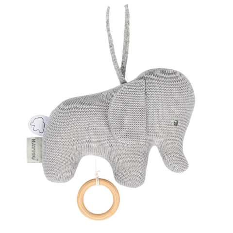 Nattou felhúzós zenélõ játék pamut kicsi Tembo - Elefánt kötött szürke -Zenélõ elefánt figura, puha, kötött anyagból -Méretek: 23x17x8 cm -Összetétel: 100% pamut -Tisztítás: mosógépben mosható