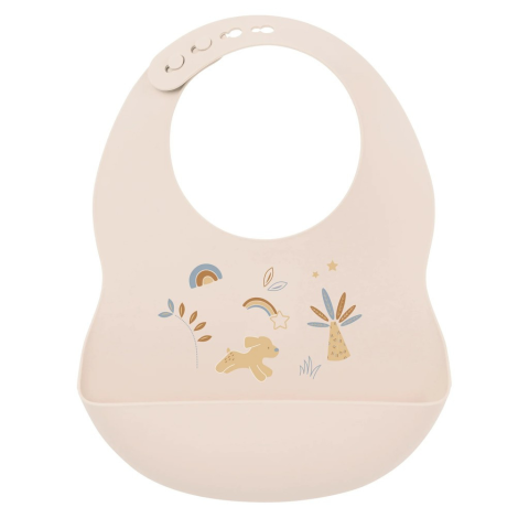 1 kép NATTOU szilikon előke csattal, BPA-mentes, bézs színben