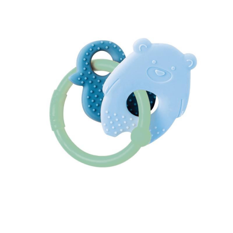 Három különböző részből álló szilikon rágóka, amely enyhíti a fogzás okozta fájdalmat. Egyszerű csörgőként is használható, formájának és kialakításának köszönhetően pedig a kis kezek motorikus készségeinek fejlesztésére. Gyönyörű, visszafogott design