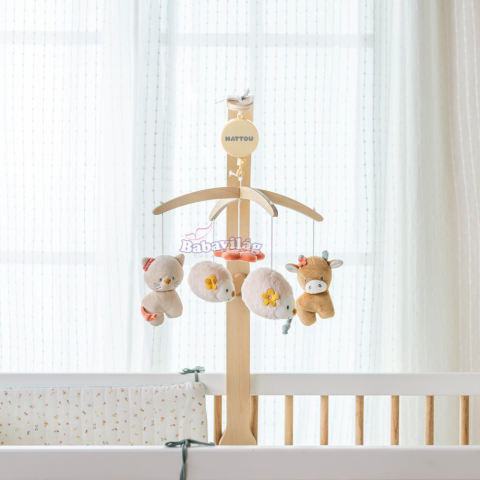 Az imádnivaló zenélő-forgó, aranyos bújós figuráival – amelyek finoman forognak és mozognak az altatódal ritmusára – nyugodt alvást és édes álmokat biztosít. A zenélő-forgó egyszerűen és biztonságosan rögzíthető a kiságyhoz, bölcsőhöz vagy a járókához, a