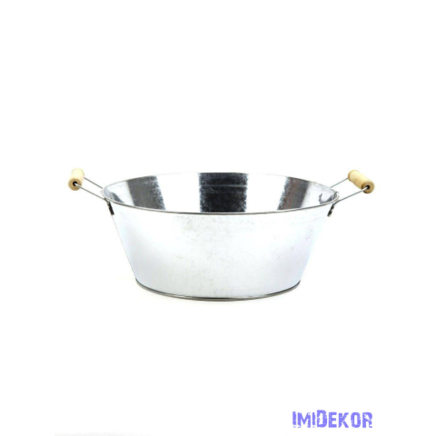 Natúr bádog tál fafoganttyús 27 cm dekorációs kellék 1 kép
