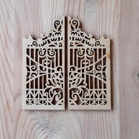 Lézervágott natúr fa kapu. Szépséges dísze lehet koszorúnak, minikertnek.