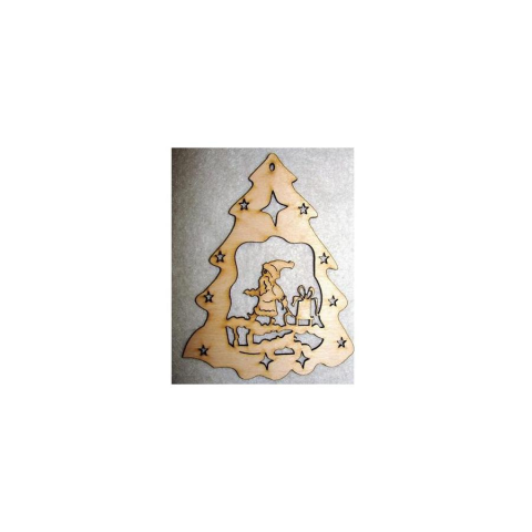 Lézervágott natúr fenyőfa alakú lap télapóval. Festhető, lazúrozható. lakkozható