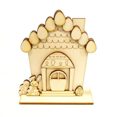 Natúr fa házikó nyuszival és tojással. Talpba állítható, de lehetőség van 3 vagy 5 részes talpat is vásárolni hozzá, különleges, vidám húsvéti falut készítve belőlük. Lapraszerelten szállítjuk.