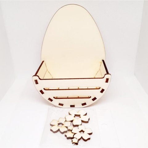 Lézervágott natúr fa kosárka tojás hátlappal. Festhető, dekupázsolható, gravirozható