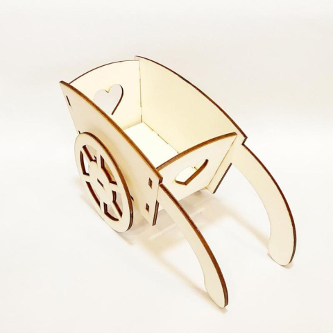 Lézervágott natúr fa talicska, festhető, dekopázsolható