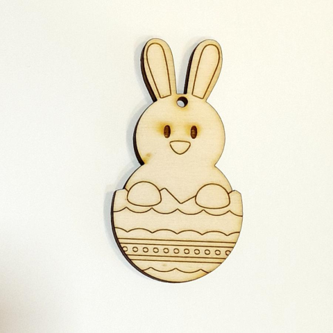 Lézervágott, natúr fa nyuszifigura tojáshéjban, felakasztható. Festheted, lazúrozhatod, díszítheted masnival, csipkével, selyemvirággal, glitterrel, de így natúron is tökéletes húsvéti dekoráció.