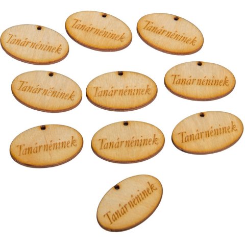 1 kép Natúr fa ovál tábla Tanár néninek 4cm 10db-os