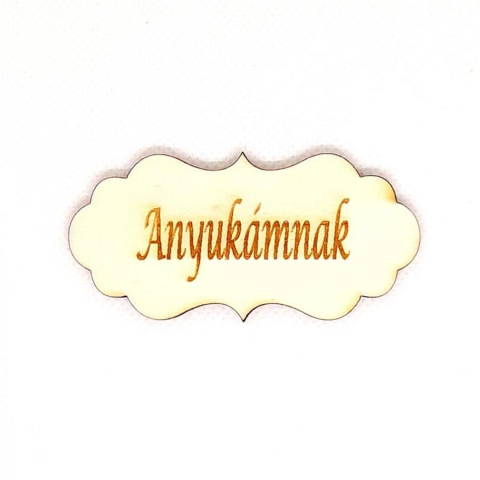 1 kép Natúr fa ovális táblácska 'Anyukámnak' felirattal. Mérete: 70x33 mm