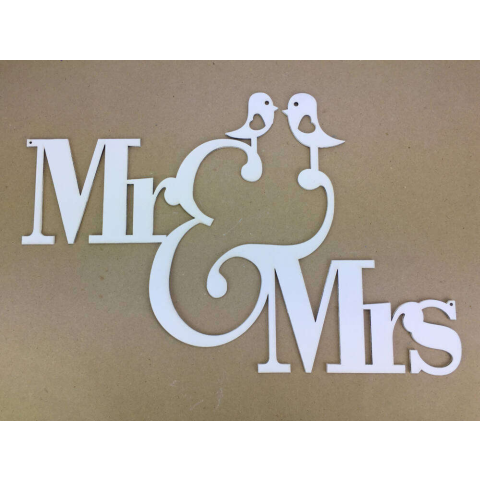 1 kép Natúr fa - "MR&MRS" madárkás felirat fehér 28x42cm