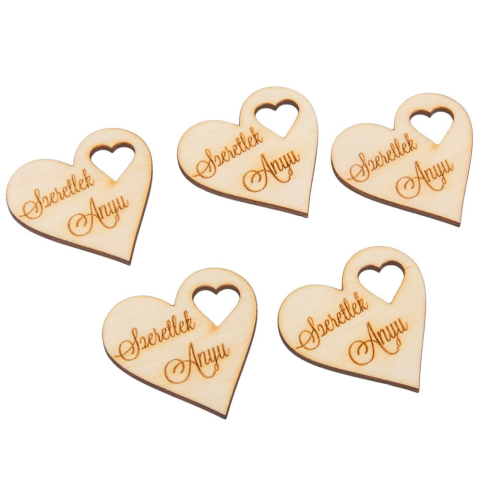 1 kép Natúr fa szív Szeretlek Anyu felirattal 5cm 5db-os