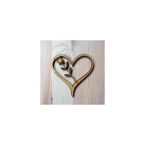 1 kép Natúr fa szívben rózsa, mérete. 10X10 cm