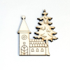 1 kép Natúr fa templom fenyővel. Mérete: 5,5x6,9 cm