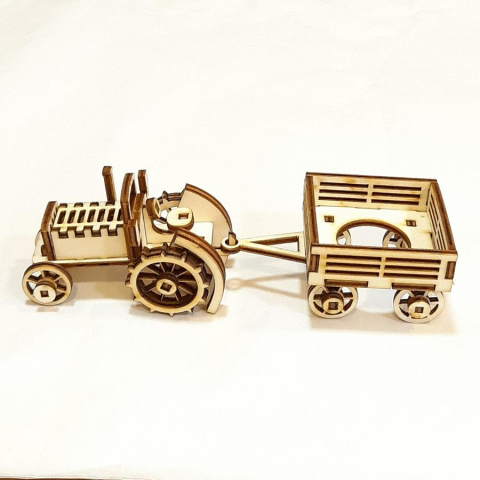 1 kép Natúr fa traktor pótkocsival. Mérete: 16x4,5x4,6 cm
