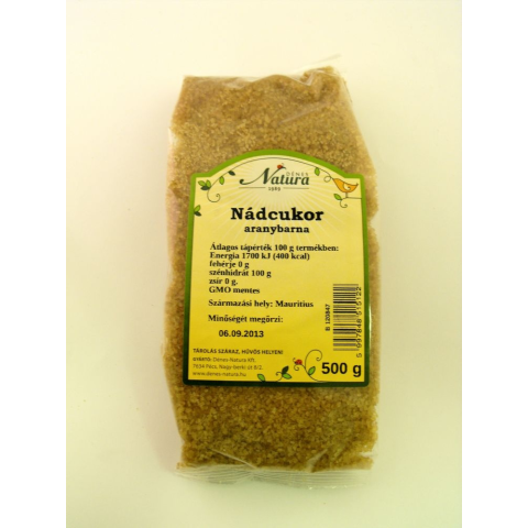 NATURA NÁDCUKOR ARANYBARNA 500 G: A hagyományos fehér cukor ideális és természetes helyettesítője. Természetes cukor, amit a szervezet sokkal jobban fel tud dolgozni, mint a fehér cukrot, emellett a cukron kívül más tápanyagokat is tartalmaz. Előállítása