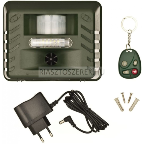 Nature ultrahangos + távirányítós nyest, macska, kutya, vadriasztó készülék 150m2 A Nature Ultrahangos állatriasztó készülék humánusan és biztonságosan riasztja a nemkívánatos állatokat a védeni kívánt területről. A készülék három különböző funkció kombi