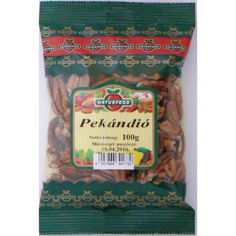 Naturfood Pekándió 100 g – prémium natúr dióféle finom, vajas ízzel. Természetes rost-, fehérje- és E-vitamin-forrás, kedvező zsírsavösszetétellel. Tudatos nassoláshoz, müzlikhez, salátákhoz.