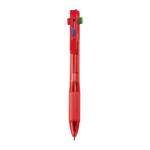 Műanyag golyóstoll 4 színes tollbetéttel (kék, fekete, piros és zöld), különböző színekben