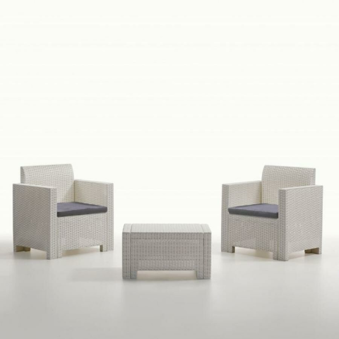 1 kép NEBRASKA 2 személyes, fehér rattan szett