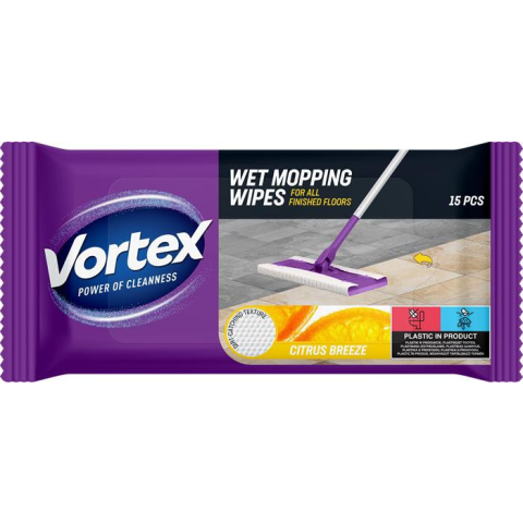 Nedves padlótörlő kendő, 15 db, VORTEX, citrom ilattal tisztító- és takarítószer, higiénia termékleírás