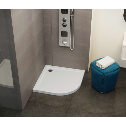 1 kép Negyedköríves akril zuhanytálca, alacsony 80x80x5 cm