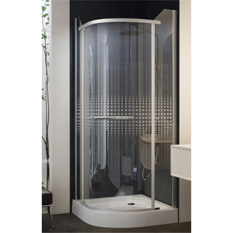 Negyedköríves, keret nélküli nyílóajtós zuhanykabin 90x90x195 Mintás üveggel