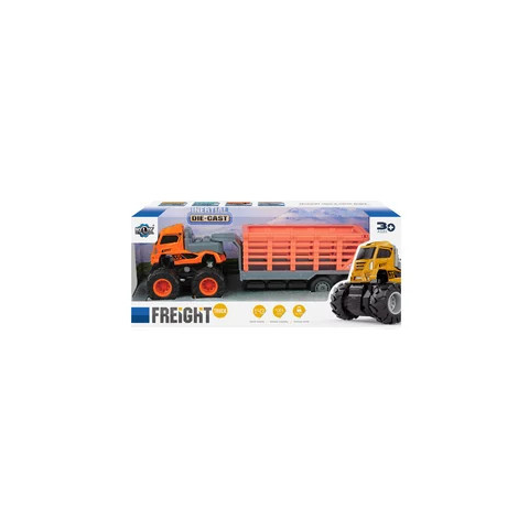Négykerékmeghajtású teherszállító utánfutóval autópálya és játékautó 1 kép