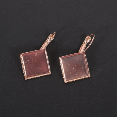 Négyzet fülbevaló alap, 15mm rózsaarany szín 1 pár