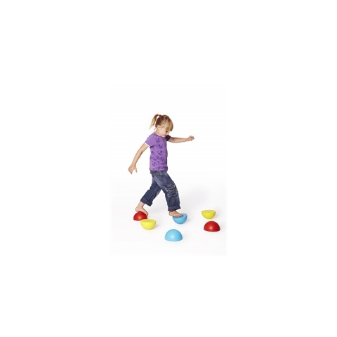 Gonge lépegeto:15cm átméroju, 7cm magas 6db-os egyensúlyozó, lépegeto félgömb készlet, a kövek 3 eltéro színbenAz alja csúszásgátló kiképzésu, belseje homokkal nehezített. Idojárásálló muanyag felületu.Mind a két oldalán jól használható egyensúlyozásra, kihívást jelent a félgömbön való lépegetés , helyezzük váltakozva a köveket a billeno félgömb oldalukkal is a padló felé egyet egyet a többit a félgömbbel felfele.