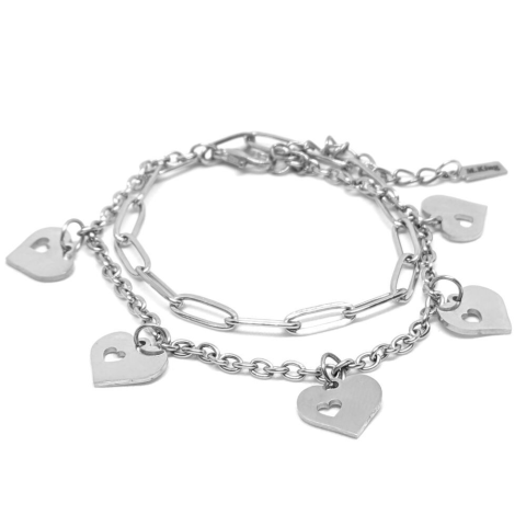 1 kép Nemesacél áttört szív charmos rozsdamentes acél dupla karkötő, ezüst színű