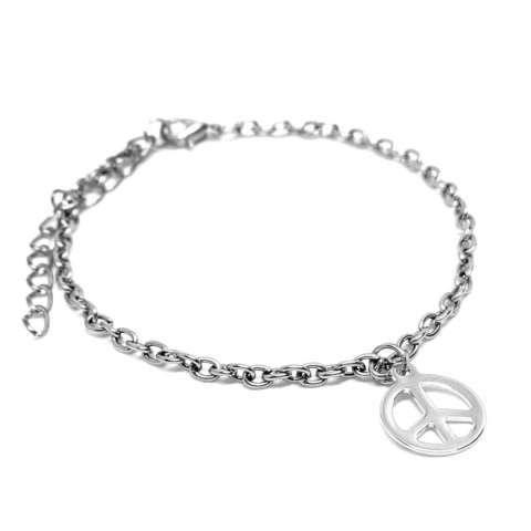 1 kép Nemesacél Békejel charmos rozsdamentes acél karkötő, ezüst színű