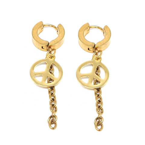 1 kép Nemesacél Békejel fülbevaló lánccal, arany színű