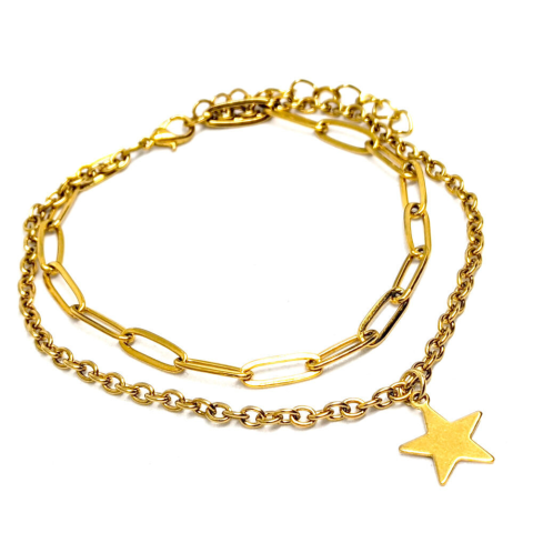 1 kép Nemesacél csillag charmos dupla karkötő, arany színű