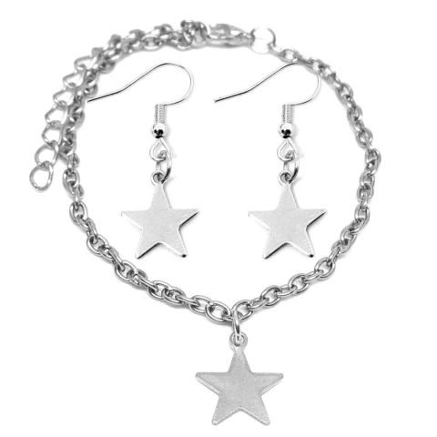 1 kép Nemesacél csillag charmos karkötő + fülbevaló szett, ezüst színű