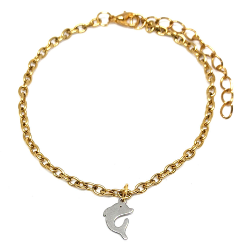 1 kép Nemesacél delfines rozsdamentes acél karkötő, arany színű