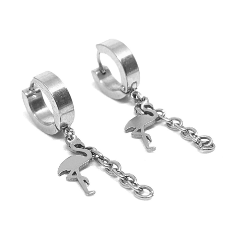 1 kép Nemesacél Flamingós fülbevaló lánccal