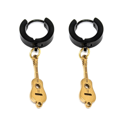 1 kép Nemesacél Hegedű fülbevaló, arany színű, fekete akasztóval