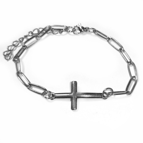 1 kép Nemesacél kereszt díszes rozsdamentes acél hosszú szemes karkötő, ezüst színű