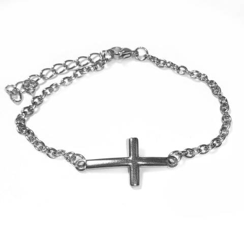 1 kép Nemesacél kereszt díszes rozsdamentes acél karkötő, ezüst színű