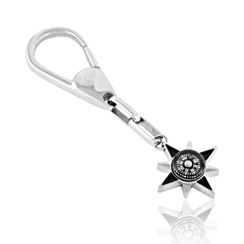 Részletek Olasz, nemesacél kulcstartó csillag függővel, mozgó tájolóval. A nemesacélból készített ékszerek, mint ez a nemesacél kulcstartó sokkal tartósabbak és ellenállóbbak mint például az ezüst ékszerek. Nem feketednek. További érv az acél ékszerek me