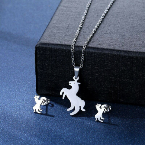 Tedd fel kérdésed a(z) Nemesacél lovacskás medál és fülbevaló szett, ezüst színű termékről!