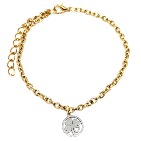 1 kép Nemesacél Négylevelű lóhere charmos rozsdamentes acél karkötő, arany színű